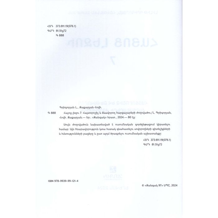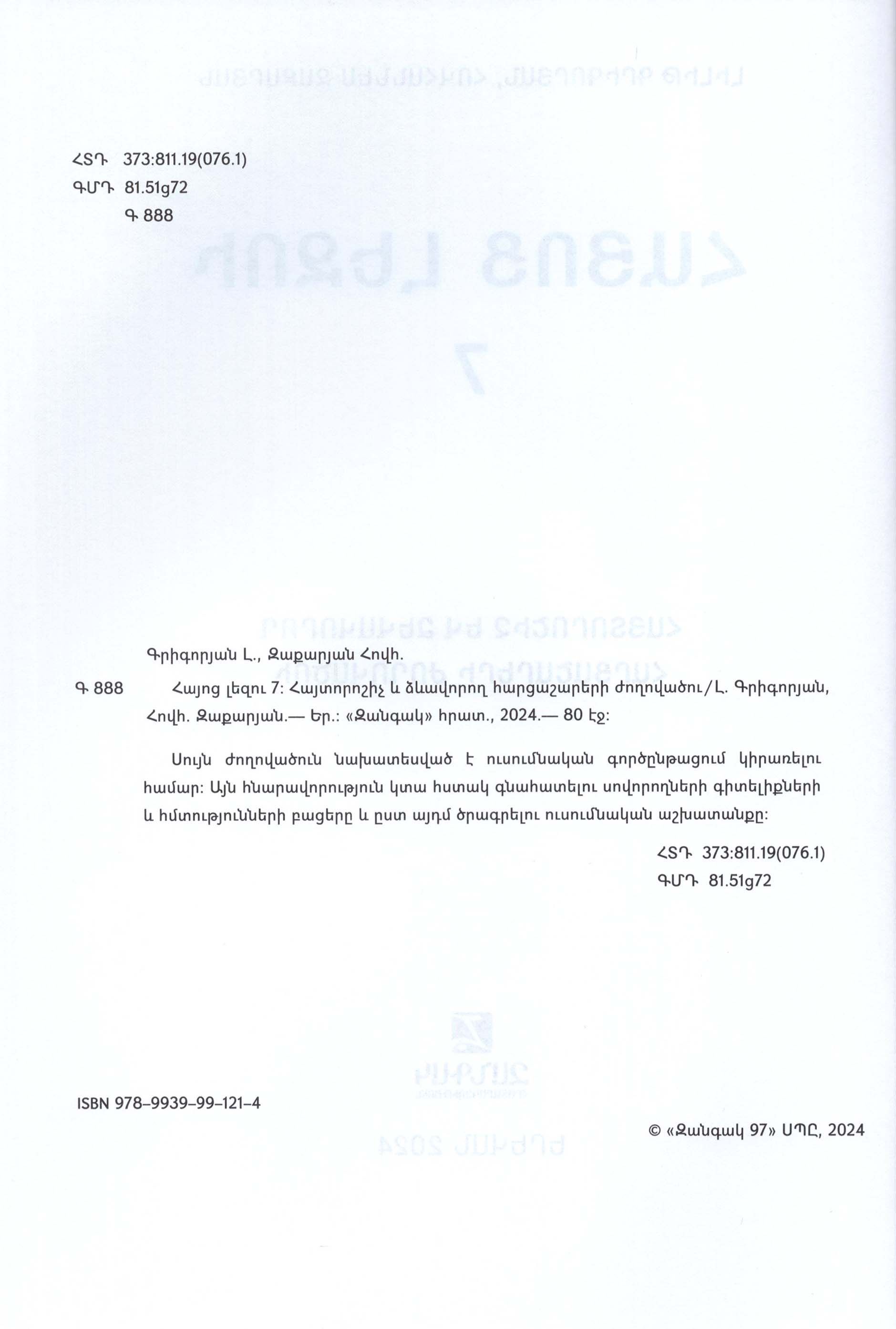 Հայոց լեզու 7․ Հայտորոշիչ և ձևավորող գնահատման հարցաշարերի ժողովածու