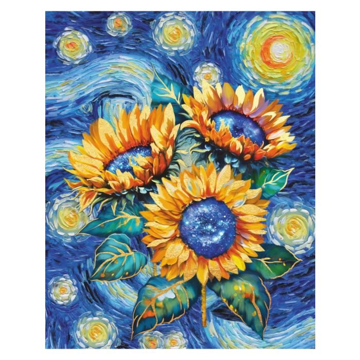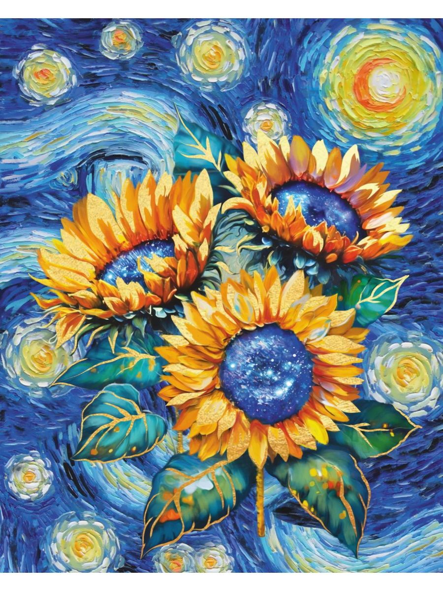 Холст С Красками 40Х50 См По Номерам, с золотой поталью, В коробке, подсолнухи И Звездное Небо
