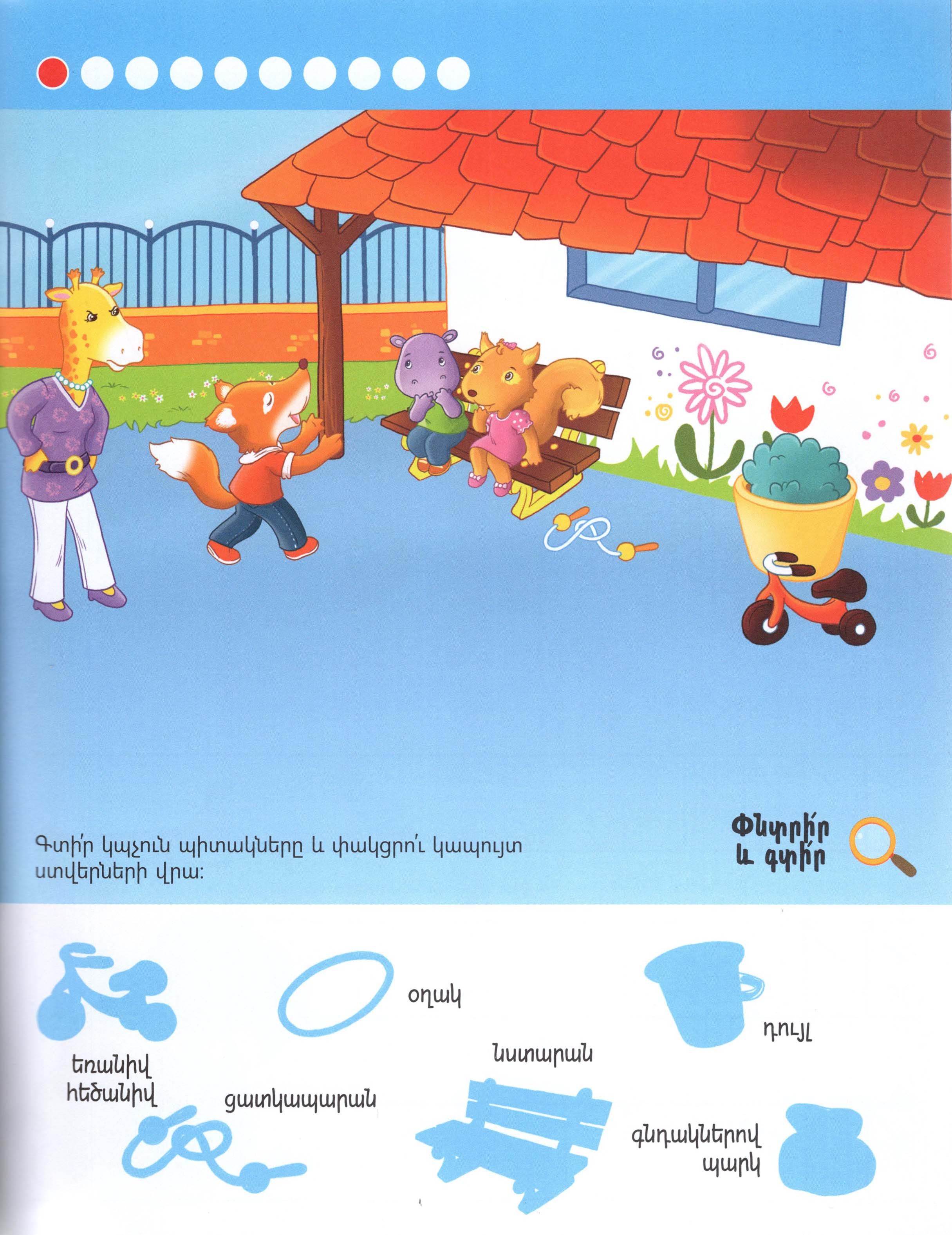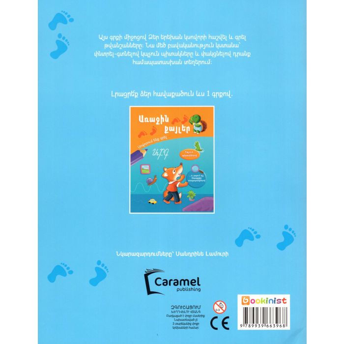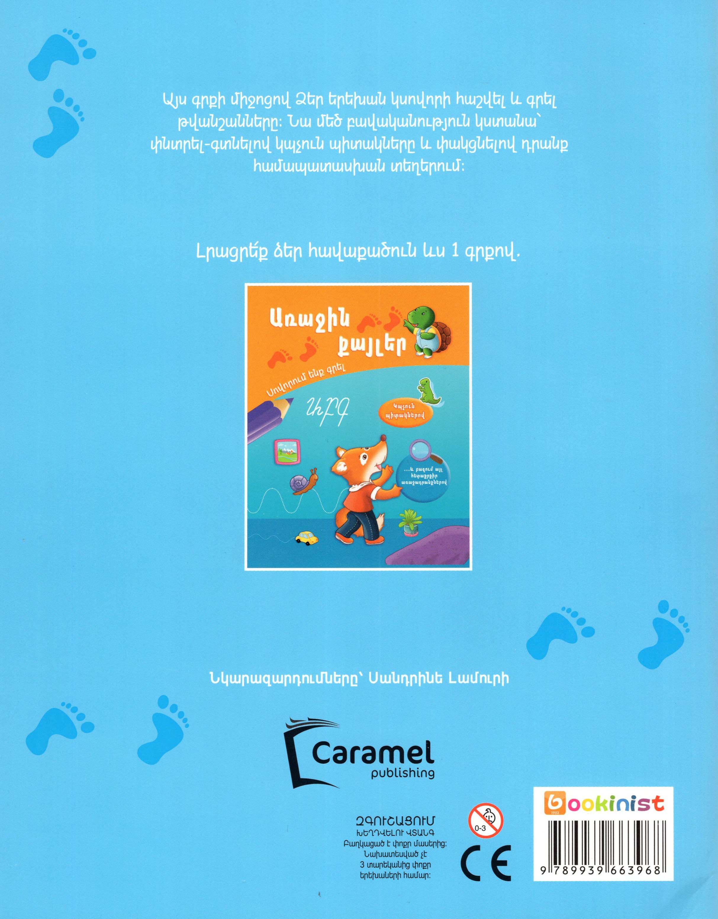 Այս գրքի միջոցով Ձեր երեխան կսովորի հաշվել և գրել թվանշանները: Նա մեծ բավականություն կստանա՝ փնտրել-գտնելով կպչուն պիտակները և փակցնելով դրանք համապատասխան տեղերում: