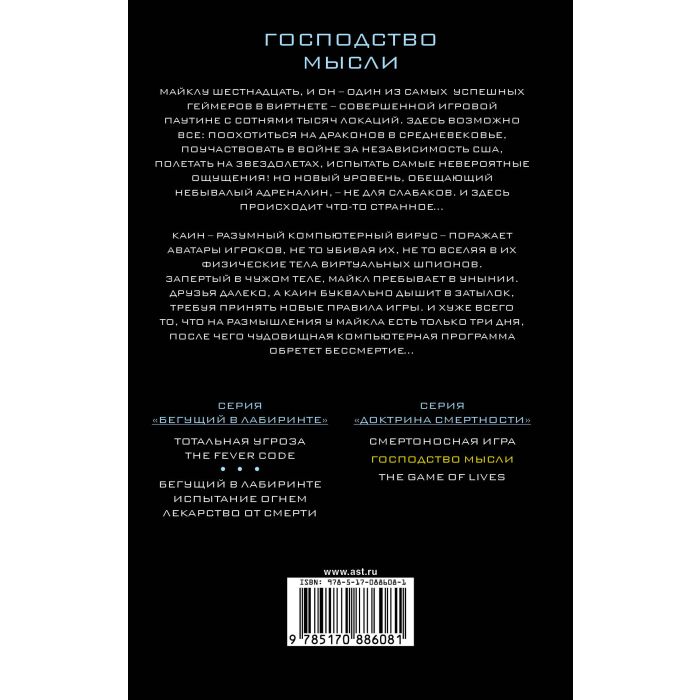 Майклу шестнадцать, и он – один из самых успешных геймеров в виртнете – совершенной игровой паутине с сотнями тысяч локаций. Здесь возможно все: поохотиться на драконов в средневековье, поучаствовать в войне за независимость США, полетать на звездолетах, испытать самые невероятные ощущения! Но новый уровень, обещающий небывалый адреналин – не для слабаков. И здесь происходит что-то странное…