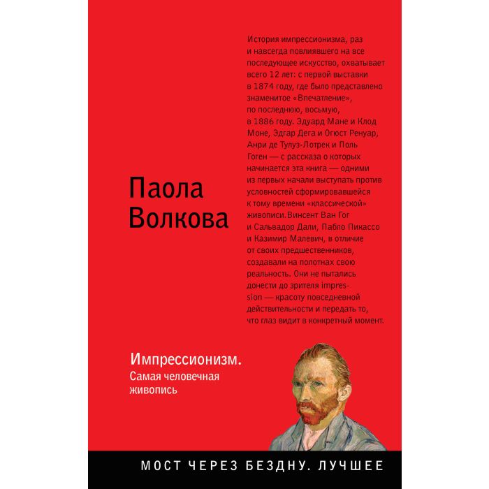 История импрессионизма, раз и навсегда повлиявшего на все последующее искусство, охватывает всего 12 лет: с первой выставки в 1874 году, где было представлено знаменитое "Впечатление", по последнюю, восьмую, в 1886 году. Эдуард Мане и Клод Моне, Эдгар Дега и Огюст Ренуар, Анри де Тулуз-Лотрек и Поль Гоген – с рассказа о которых начинается эта книга – одними из первых начали выступать против условностей сформировавшейся к тому времени "классической" живописи. Винсент Ван Гог и Сальвадор Дали, Пабло Пикассо и Казимир Малевич, в отличие от своих предшественников, создавали на полотнах свою реальность. Они не пытались донести до зрителя impression – красоту повседневной действительности и передать то, что глаз видит в конкретный момент. В путешествие от импрессионизма к сюрреализму, от впечатления – к эмоции, от Венеры Милосской до "Черного квадрата" приглашает нас Паола Дмитриевна Волкова в очередном томе серии "Мост через бездну".