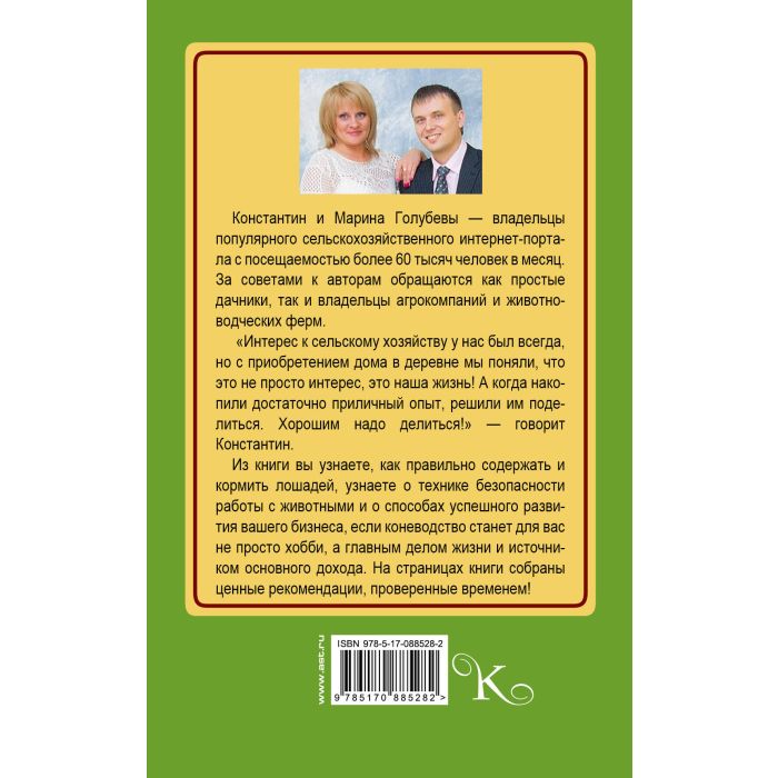 В этом справочном пособии собрано практическое руководство по коневодству. Из книги вы узнаете, как правильно содержать и кормить лошадей, как от физиологических особенностей животного зависит его племенная ценность, узнаете о способах разведения лошадей и о технике безопасности работы с животными, разберетесь в тонкостях строительства конюшен и содержания помещений по нормам пожарной безопасности и СанПиНа, книга также поможет разобраться в способах успешного развития вашего бизнеса. На страницах книги собраны ценные рекомендации, проверенные временем!