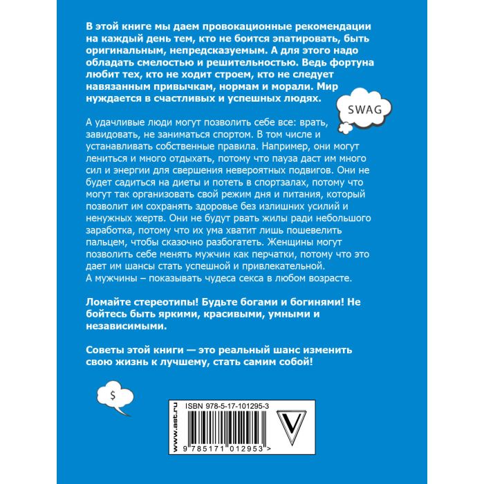 В этой книге мы даем провокационные рекомендации на каждый день тем, кто не боится эпатировать, быть оригинальным, непредсказуемым. А для этого надо обладать смелостью и решительностью. Ведь фортуна любит тех, кто не ходит строем, кто не следует навязанным привычкам, нормам и морали. Мир нуждается в счастливых и успешных людях.