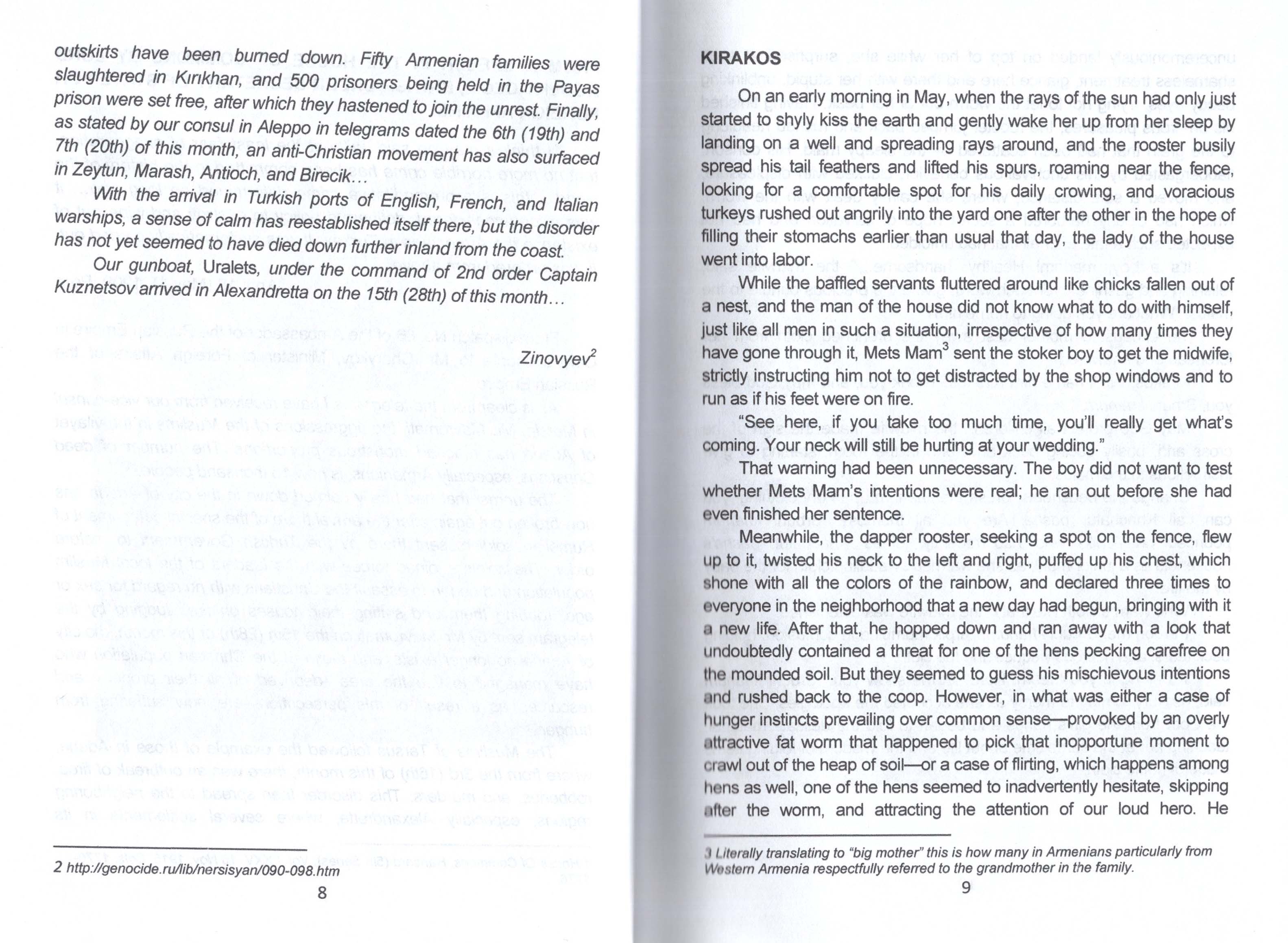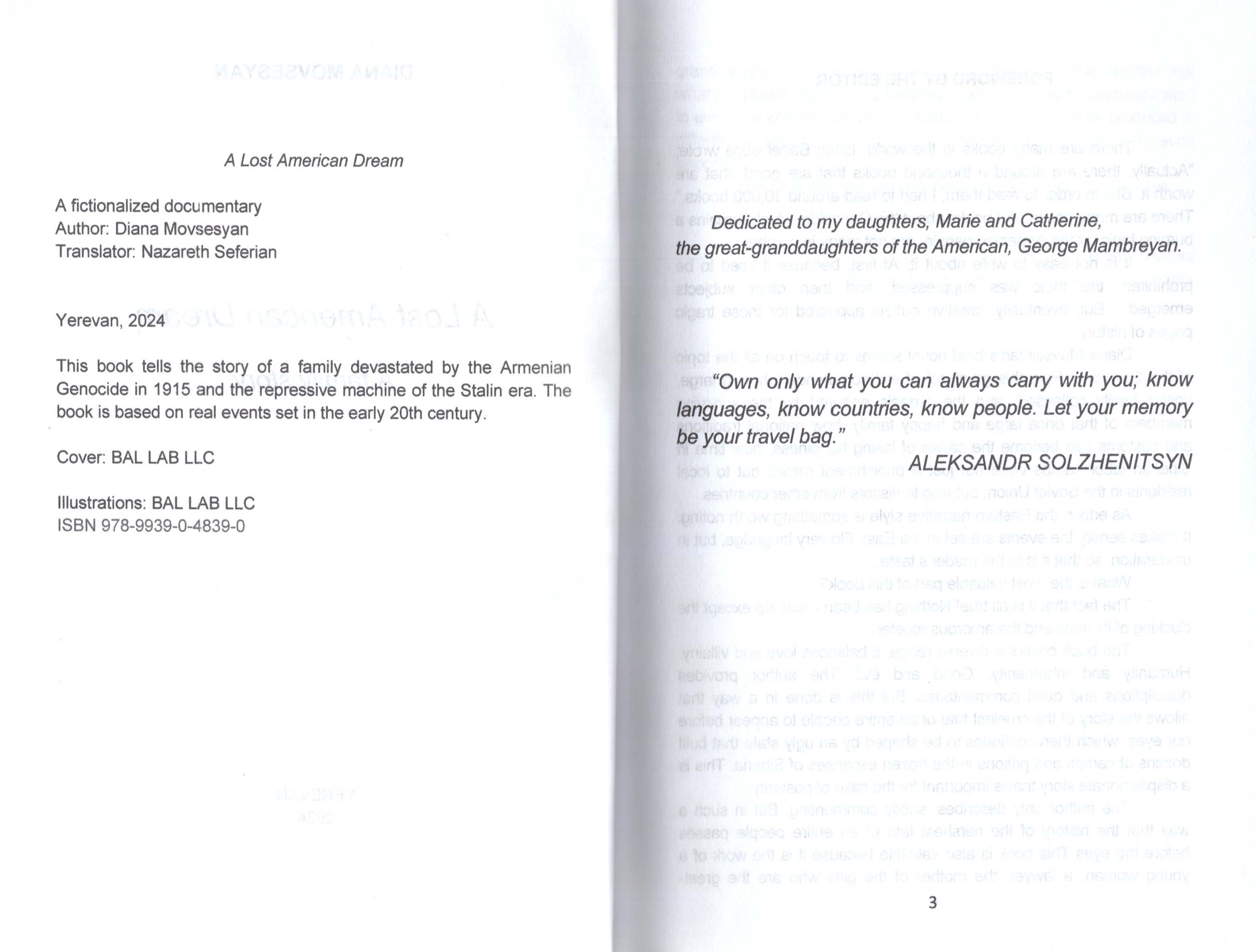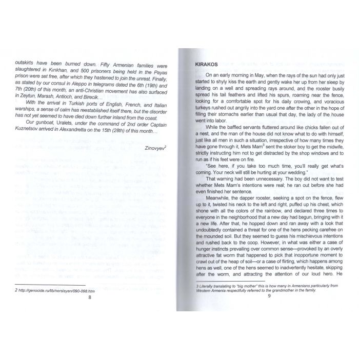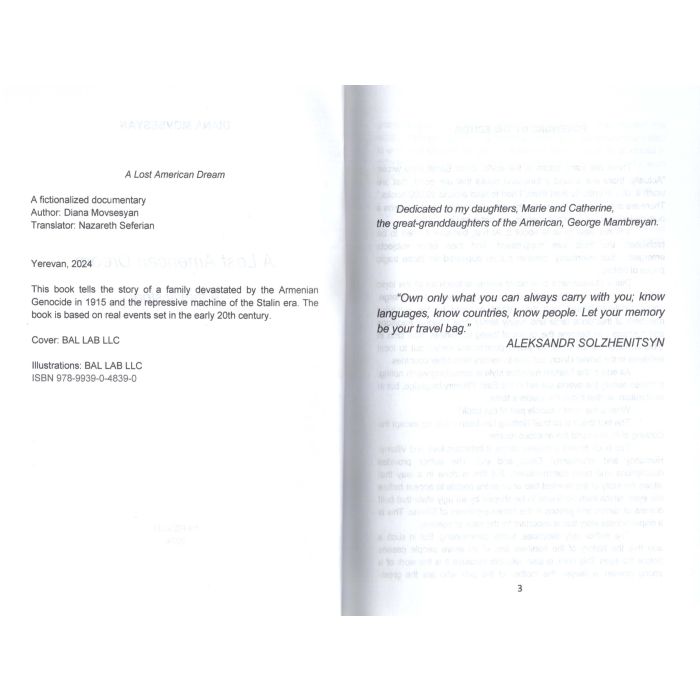 This book tells the story of a family devastated by the Armenian Genocide in 1915 and the repressive machine of the Stalin era. The book is based on real events set in the early 20th century.