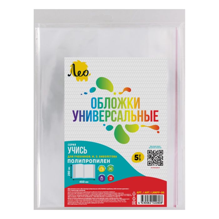 Обложка для учебников 280 х 450мм х 70мкм. 5шт. с клеевым краем