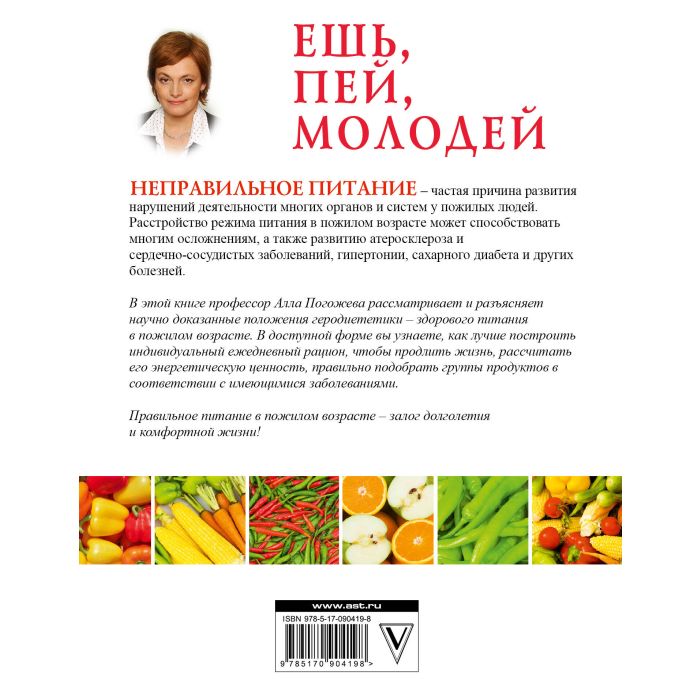 В этой книге профессор Алла Погожева рассматривает и разъясняет научно доказанные положения геродиететики – здорового питания в пожилом возрасте. В доступной форме вы узнаете, как лучше построить индивидуальный ежедневный рацион, чтобы продлить жизнь, рассчитать его энергетическую ценность, правильно подобрать группы продуктов в соответствии с имеющимися заболеваниями.