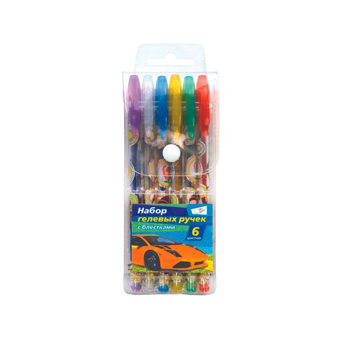 Набор гелевых ручек ArtSpace "Машинки", 6цв., 1,0мм, с блестками, ПВХ чехол