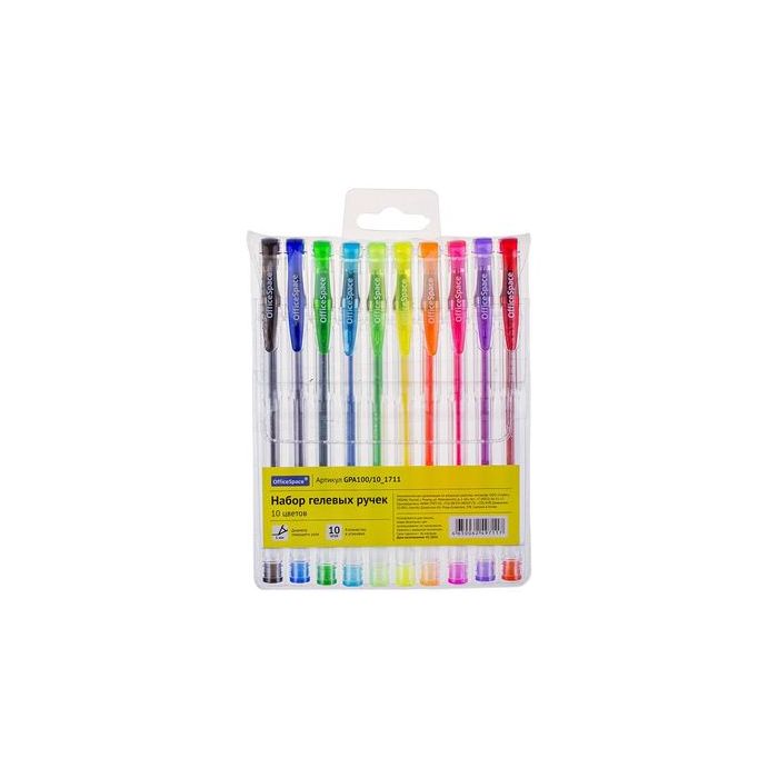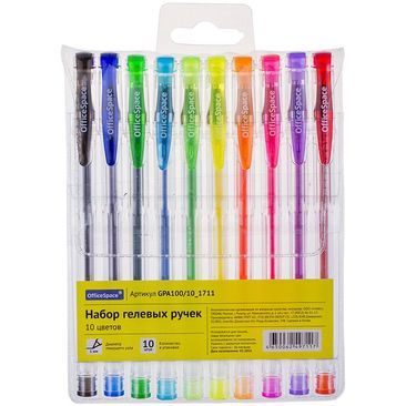 Набор гелевых ручек OfficeSpace 10цв., 1,0мм, европодвес