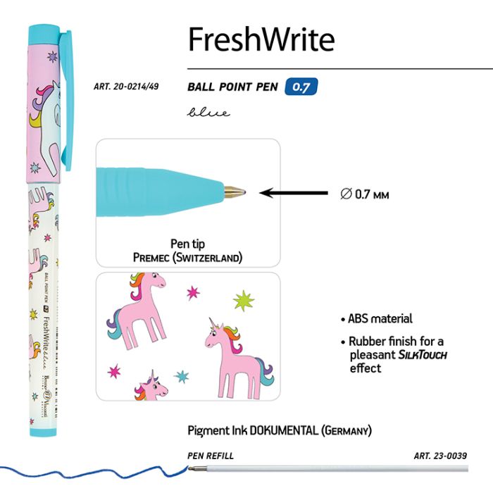 Ручка Альт "Freshwrite. Единорог" Шариковая 0.7 Мм, Синяя
