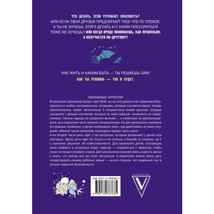 Известный детский психолог в увлекательной форме расскажет вашему ребёнку, как правильно поступать в сложных ситуациях, с которыми он сталкивается на каждом шагу, а красочные забавные картинки помогут ему преодолеть страх и избежать опасности.