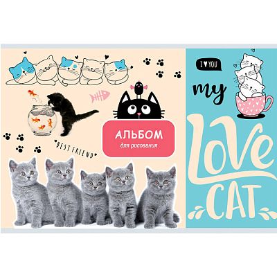Альбом для рисования А4 скоба 16л. "Люблю кошек!" (ассорти