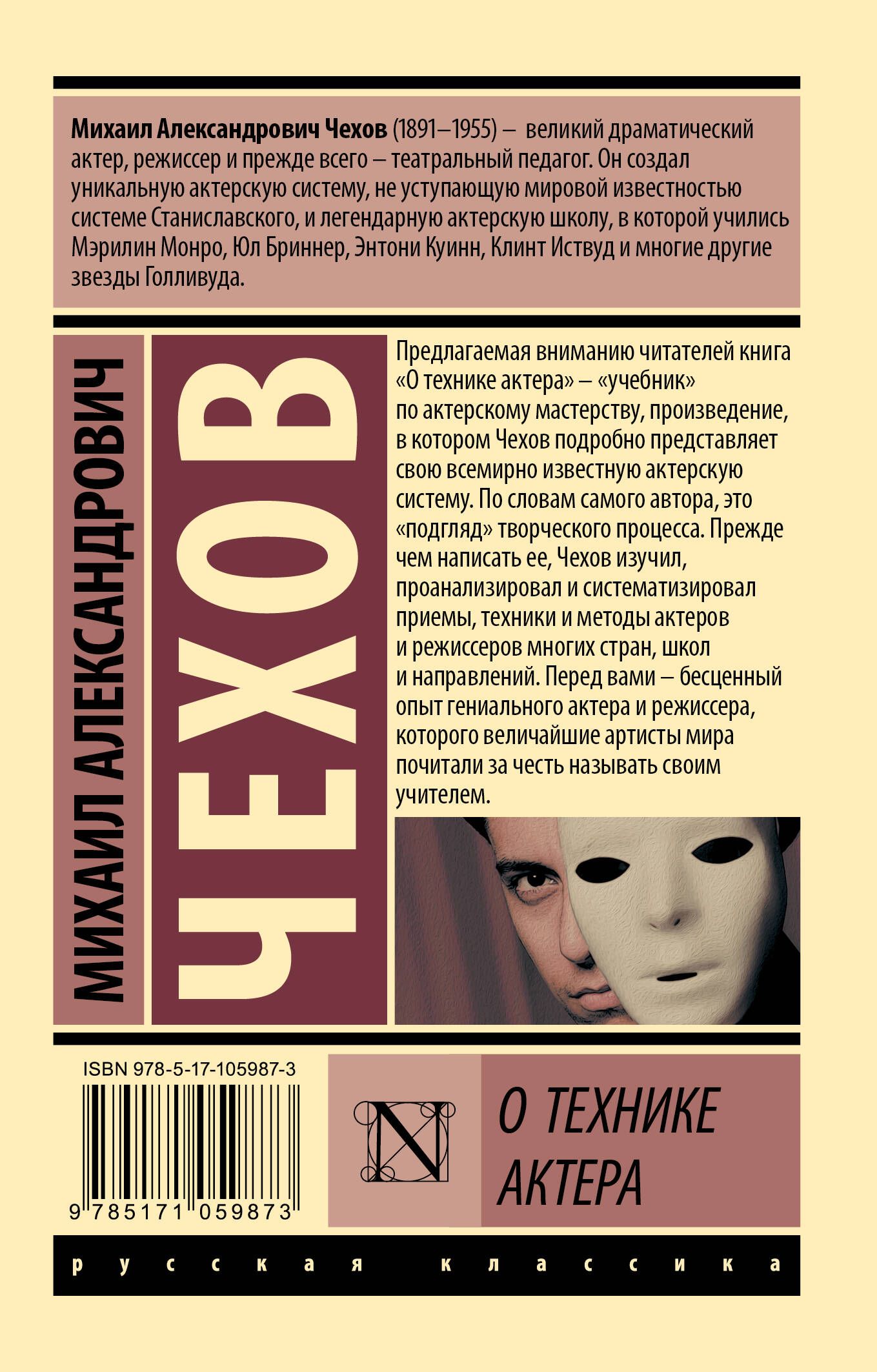 Предлагаемая вниманию читателей книга "О технике актера" – "учебник" по актерскому мастерству, произведение, в котором Чехов подробно представляет свою всемирно известную актерскую систему. По словам самого автора, это "подгляд" творческого процесса. Прежде чем написать ее, Чехов изучил, проанализировал и систематизировал приемы, техники и методы актеров и режиссеров многих стран, школ и направлений. Перед вами — бесценный опыт гениального актера и режиссера, которого величайшие артисты мира почитали за честь называть своим учителем.