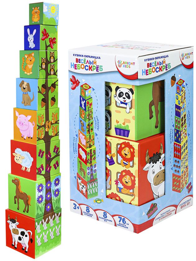 Bright Kids. Серия "Разумные Детки". Кубики-Пирамидка Веселый Небоскребе