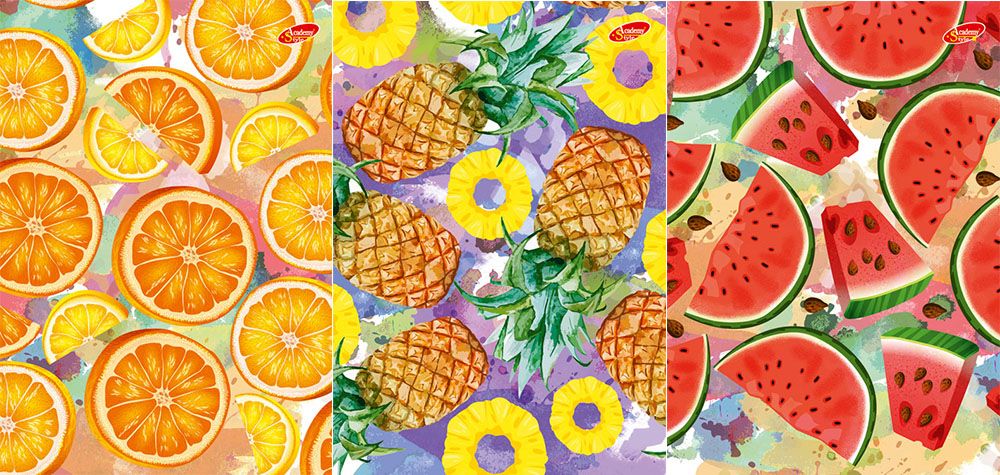Блокнот А6 скрепка 24л. клетка "Фрукты"
