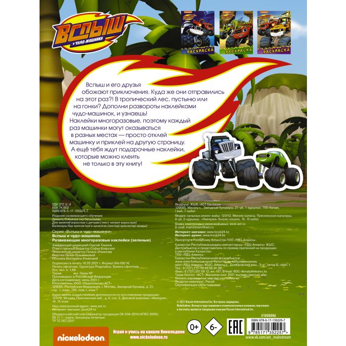 Вспыш и его друзья обожают приключения. Куда же они отправились на этот раз?! В тропический лес, пустыню или на гонки? Дополни развороты наклейками чудо-машинок и узнаешь! Наклейки многоразовые, поэтому каждый раз машинки могут оказываться в разных местах - просто отклей машинку и приклей на другую страницу. А ещё тебя ждут подарочные наклейки, которые можно клеить не только в эту книгу!