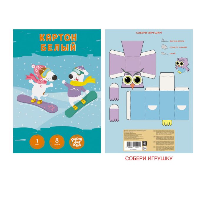 Набор белого картона Канц Эксмо 8л. Формат 200х280 мм. Зимние забавы
