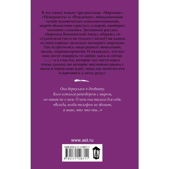 В настоящую книгу входят три рассказа: "Мартина", "Неверность" и "Рождение", объединенные темой человеческих взаимоотношений, порой обманчиво простых, а порой, наоборот, излишне сложных.