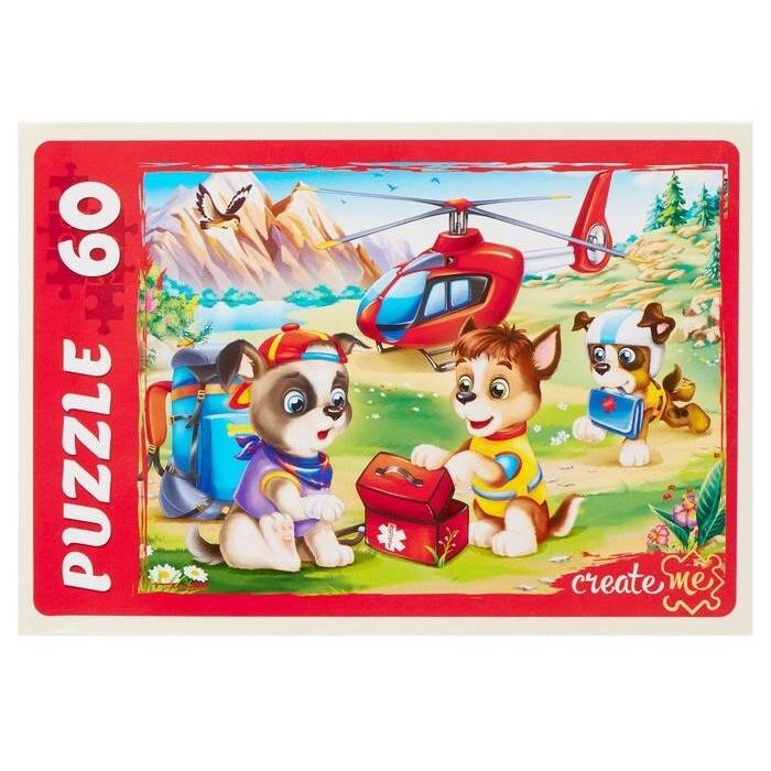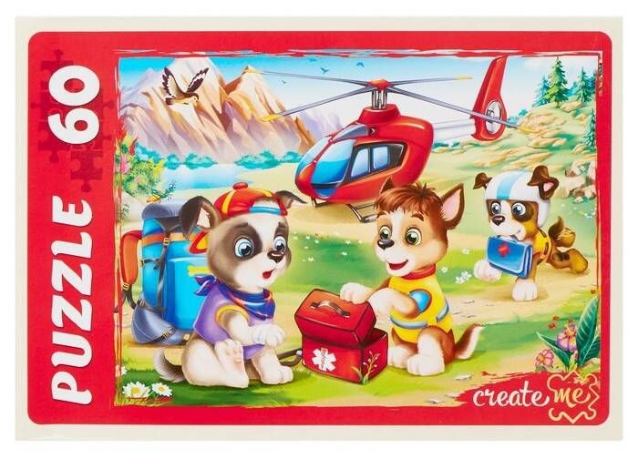 Puzzle Рыжий кот-60 Добрые щенки-спасатели