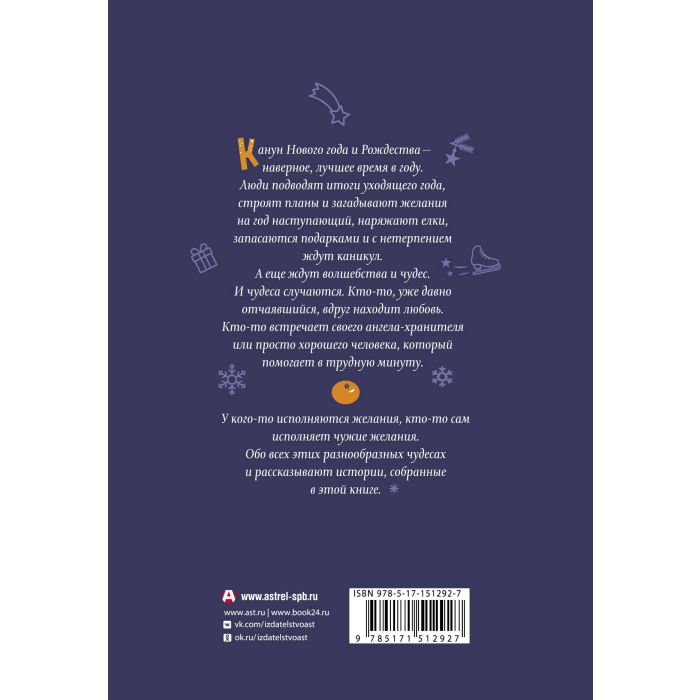 Канун Нового года и Рождества — наверное, лучшее время в году. Люди подводят итоги уходящего года, строят планы и загадывают желания на год наступающий, наряжают елки, запасаются подарками и с нетерпением ждут каникул. А еще ждут волшебства и чудес. И чудеса случаются. Кто-то, уже давно отчаявшийся, вдруг находит любовь. Кто-то встречает своего ангелахранителя или просто хорошего человека, который помогает в трудную минуту. У кого-то исполняются желания, кто-то сам исполняет чужие желания.