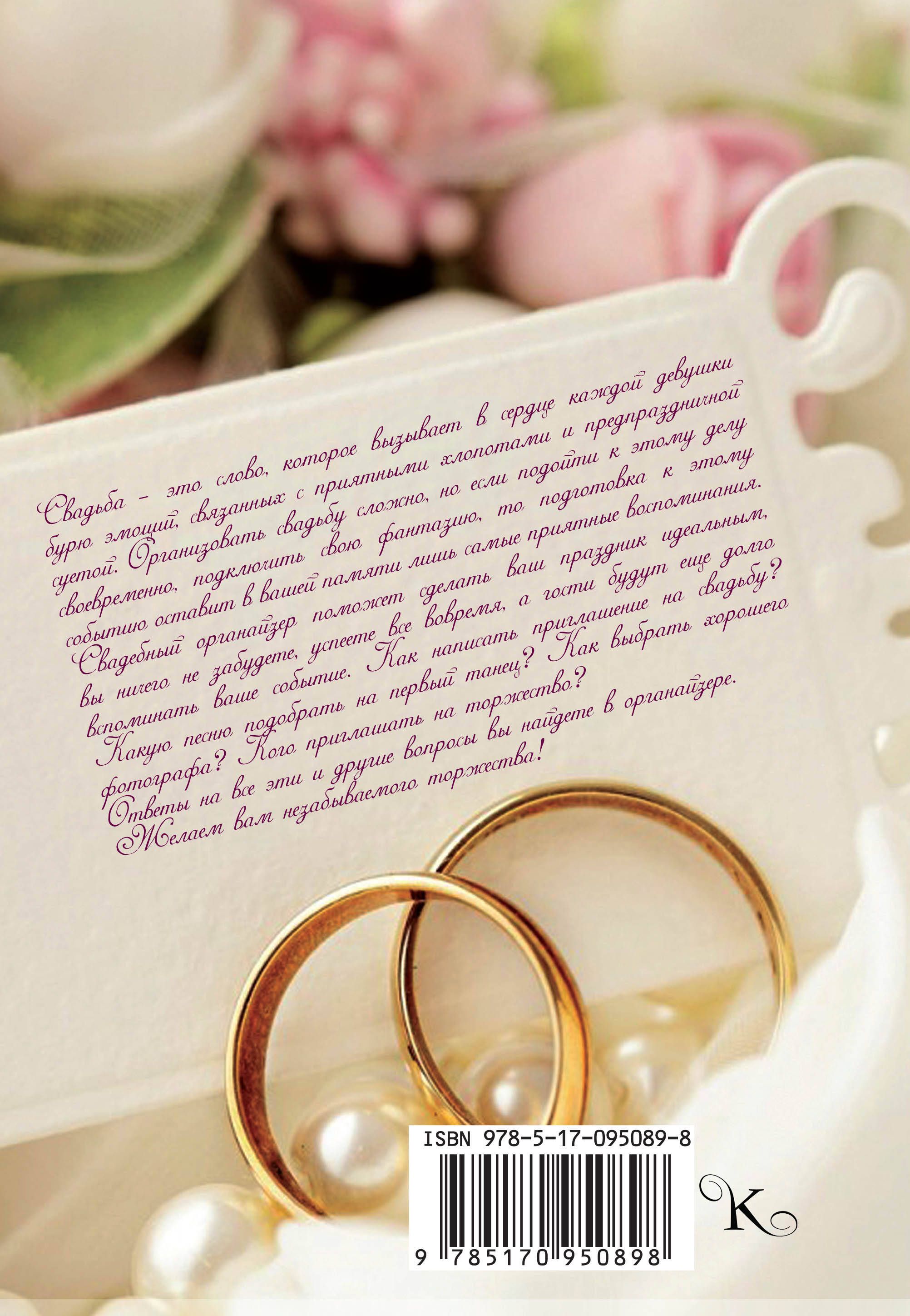 Свадьба – это слово, которое вызывает в сердце каждой девушки бурю эмоций, связанных с приятными хлопотами и предпраздничной суетой. Организовать свадьбу сложно, но если подойти к этому делу своевременно, подключить свою фантазию, то подготовка к этому событию оставит в вашей памяти лишь самые приятные воспоминания. Свадебный органайзер поможет сделать ваш праздник идеальным, вы ничего не забудете, успеете все вовремя, а гости будут еще долго вспоминать ваше событие. Как написать приглашение на свадьбу? Какую песню подобрать на первый танец? Как выбрать хорошего фотографа? Кого приглашать на торжество? Ответы на все эти и другие вопросы вы найдете в органайзере. Желаем вам незабываемого торжества!