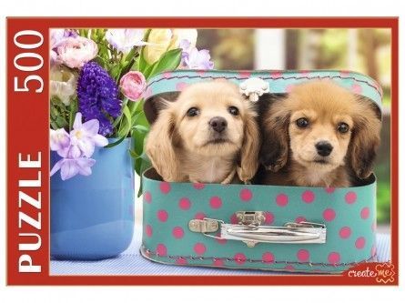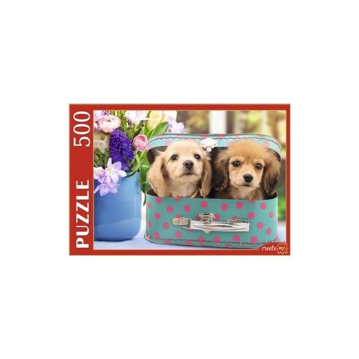 Puzzle Рыжий кот-500 Смешные щенки в чемодане