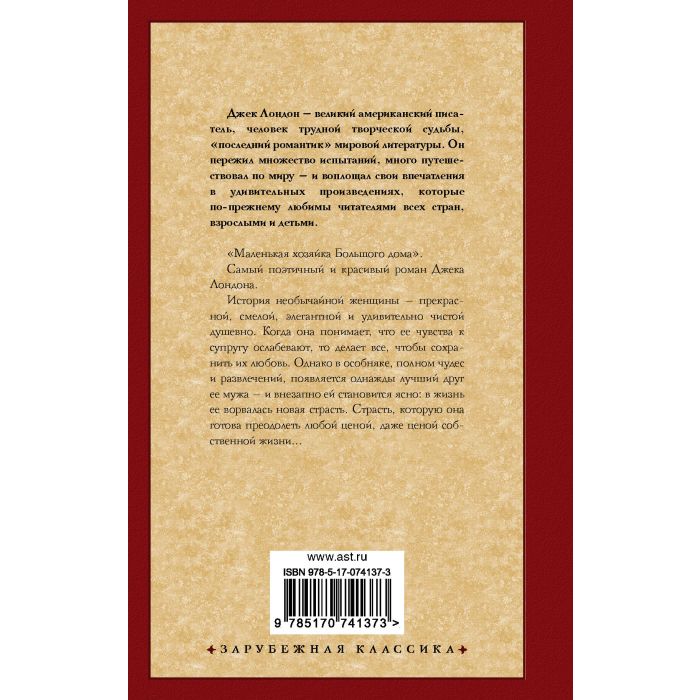 Самый поэтичный и красивый роман Джека Лондона. История необычайной женщины – прекрасной, смелой, элегантной и удивительно чистой душевно. Когда она понимает, что ее чувства к супругу ослабевают, то делает все, чтобы сохранить их любовь. Однако в особняке, полном чудес и развлечений, появляется однажды лучший друг ее мужа – и внезапно ей становится ясно: в жизнь ее ворвалась новая страсть. Страсть, которую она готова преодолеть любой ценой, даже ценой собственной жизни…