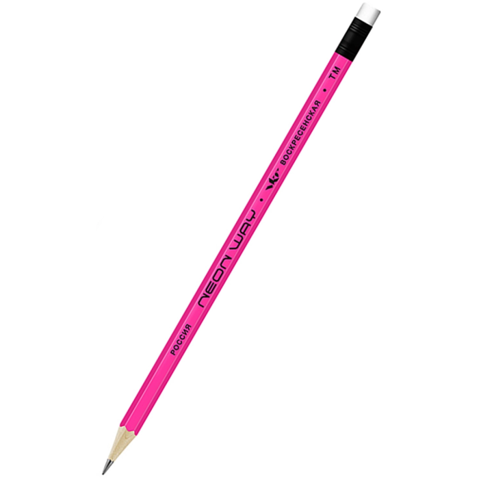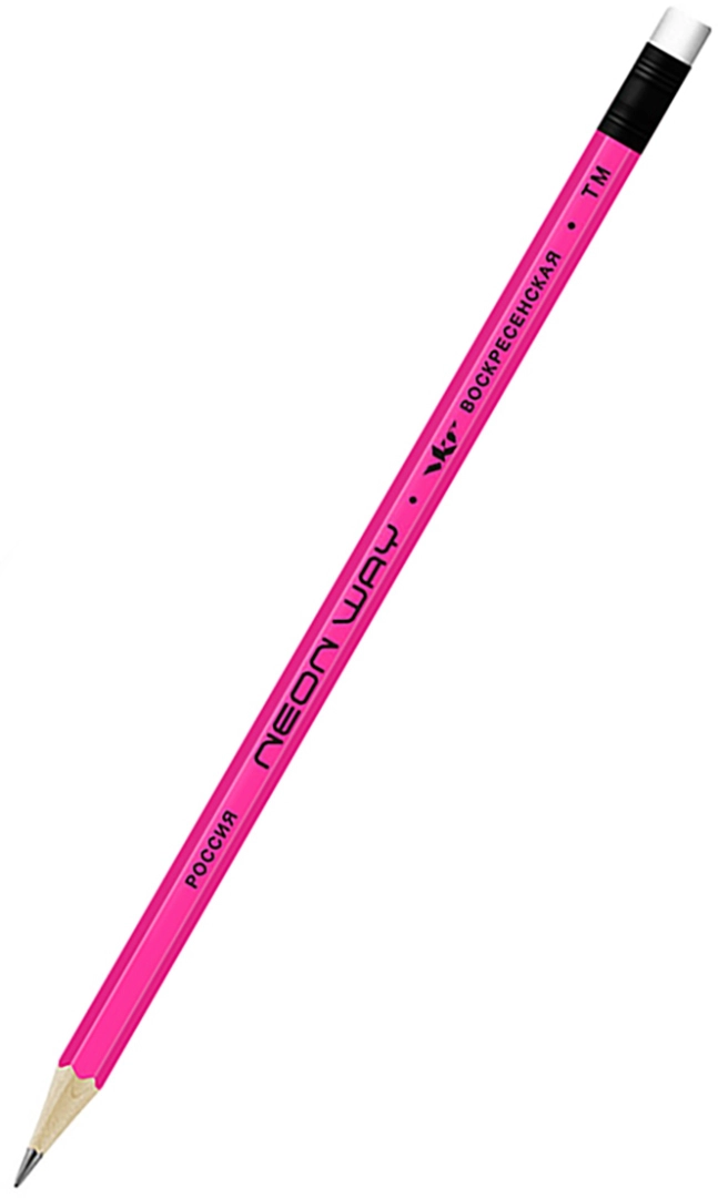 Карандаш графитный ВКФ Neon Way HB ТМ, розовый корпус, с ластиком заточенный
