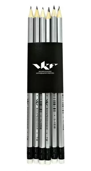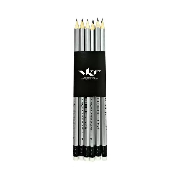 Карандаш графитный ВКФ For office H TM, серебряный корпус с ластиком заточенный