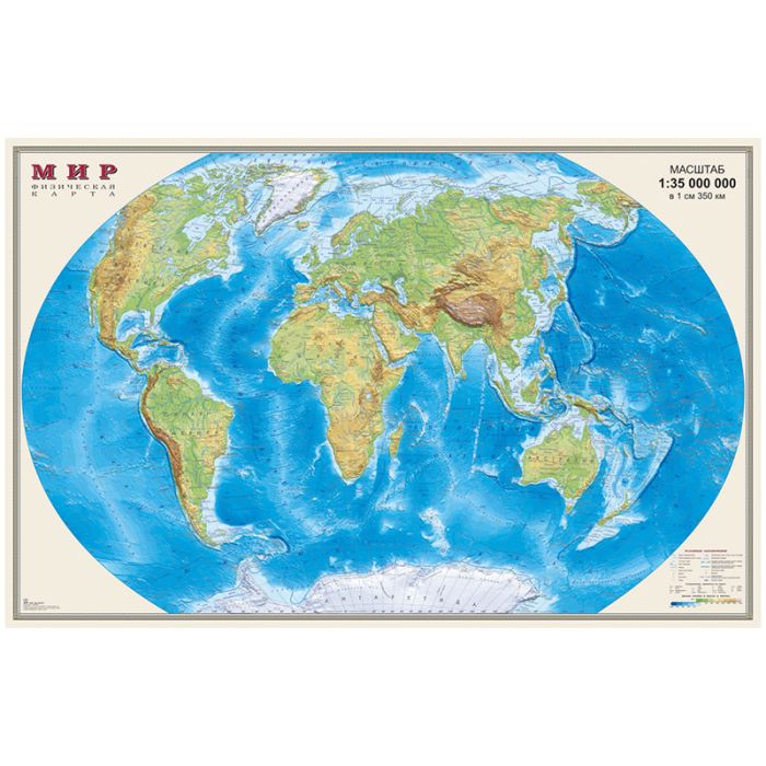 Карта Мир физическая DMB, 1:35млн., 900*580мм