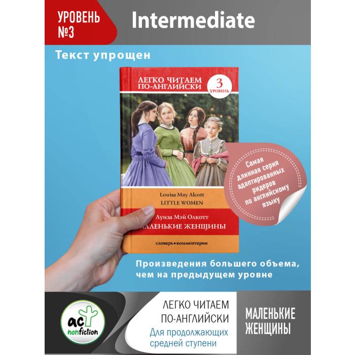 Перед вами самый знаменитый роман американской писательницы Луизы Мэй Олкотт — "Маленькие женщины", на котором выросло не одно поколение читателей по всему миру. История повествует о четырех сестрах: Маргарет, Джо, Бет и Эми. Вместе они справляются с потерями, познают истинную дружбу, влюбляются и постигают нелегкую науку взросления. Текст адаптирован для продолжающих изучение английского языка (Уровень 3).
