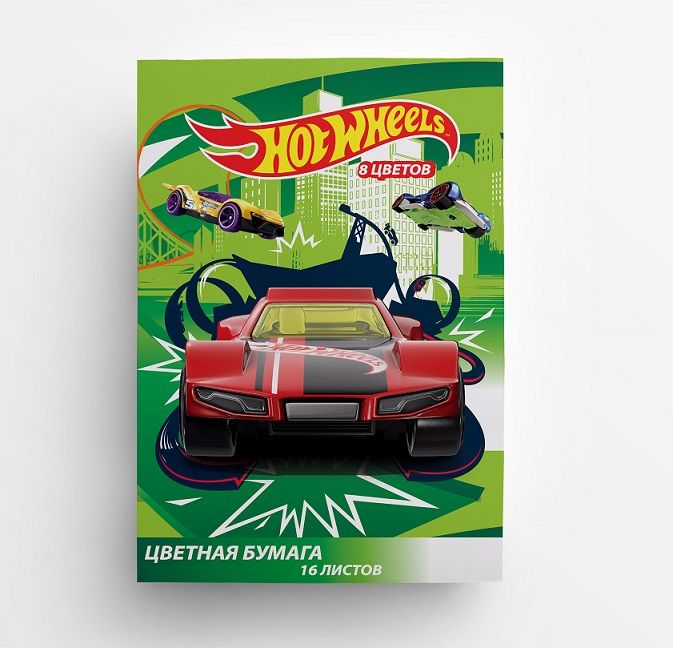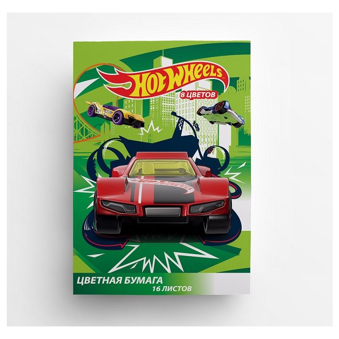 Бумага цветная 16 л. А4 8 цв. Hot Wheels, на скрепке