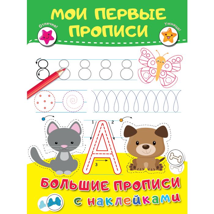 "Мои первые прописи" — это универсальный тренажёр с яркими наклейками для малышей. Ребёнок научится писать печатные буквы, цифры, потренирует пальчики, разовьёт мелкую моторику, внимание, мышление и творческие способности. Весёлые задания на самые разные темы дополнены забавными наклейками. Заниматься с такой книгой не только полезно, но и очень весело!