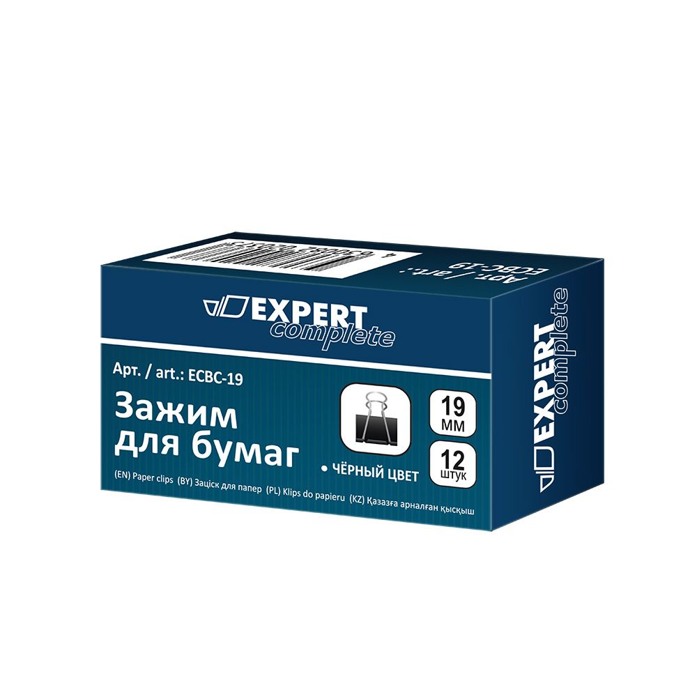 Зажимы для бумаг 19мм. 12шт. черные