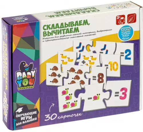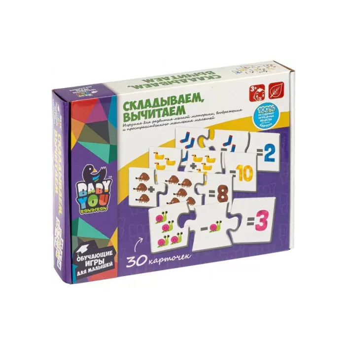 Пазл СКЛАДЫВАЕМ, ВЫЧИТАЕМ, Bondibon, 30 шт, 3 части