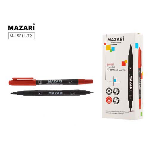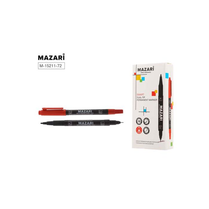 Маркер Mazari Smart permanent двусторонний красный пулевидный, 1.5-0.5мм
