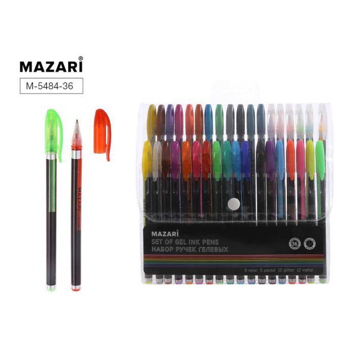 Ручки гелевые 36цв., 12 цв. с блестками + 6цв. неон + 6цв. Пастель +12цв.металлик, 0.9мм в ПВХ упако