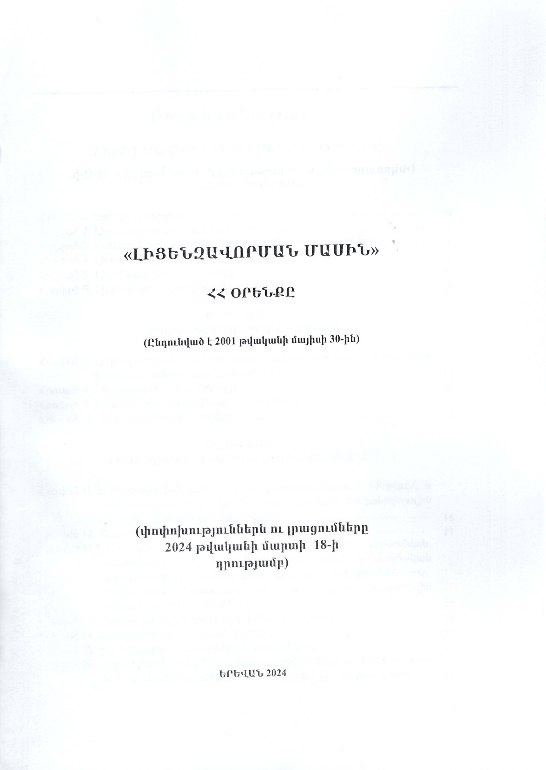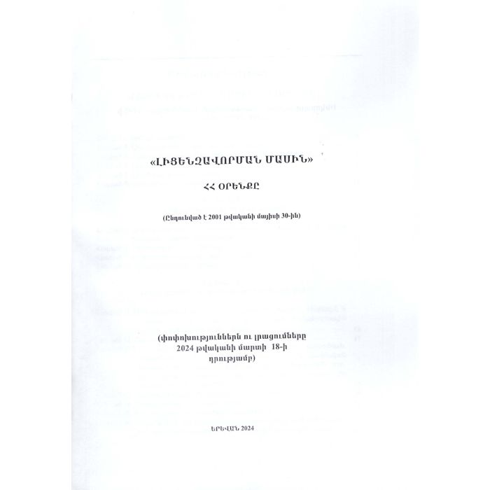 ՊՏ ՀՀ Լիցենզավորման մասին ՀՀ օրենքը