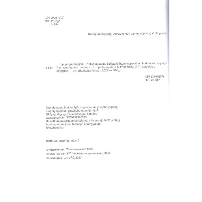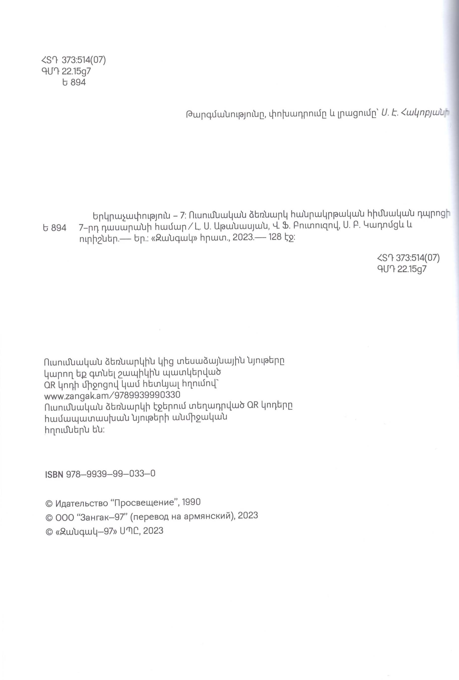 Երկրաչափություն 7․ Ուսումնական ձեռնարկ Զանգակ 2023