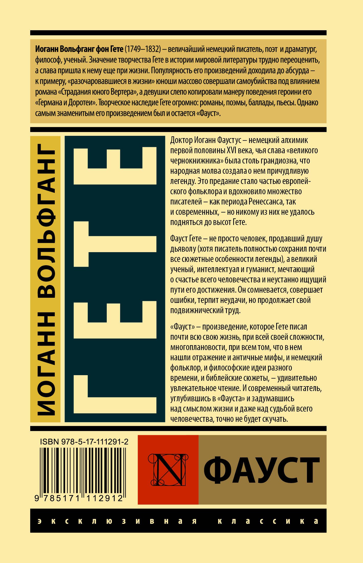 Доктор Иоганн Фаустус — немецкий алхимик первой половины XVI века, чья слава "великого чернокнижника" была столь грандиозна, что народная молва создала о нем причудливую легенду. Это предание стало частью европейского фольклора и вдохновило множество писателей — как периода Ренессанса, так и современных, — но никому из них не удалось подняться до высот Гёте. Фауст Гёте — не просто человек, продавший душу дьяволу (хотя писатель полностью сохранил почти все сюжетные особенности легенды), а великий ученый, интеллектуал и гуманист, мечтающий о счастье всего человечества и неустанно ищущий пути его достижения. Он сомневается, совершает ошибки, терпит неудачи, но продолжает свой подвижнический труд. "Фауст" — произведение, которое Гёте писал почти всю жизнь, при всей своей сложности, многоплановости, при всем том, что в нем нашли отражение и античные мифы, и немецкий фольклор, и философские идеи разного времени, и библейские сюжеты, — удивительно увлекательное чтение. И современный читатель, углубившись в "Фауста" и задумавшись над смыслом жизни и даже над судьбой всего человечества, точно не будет скучать.