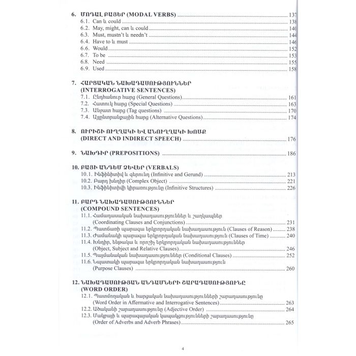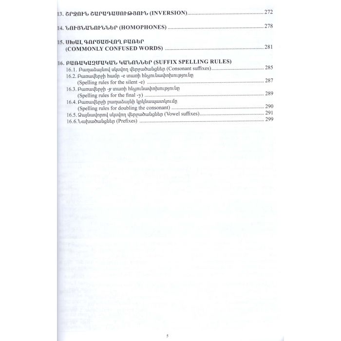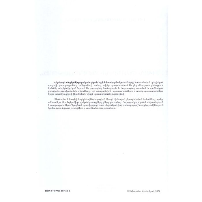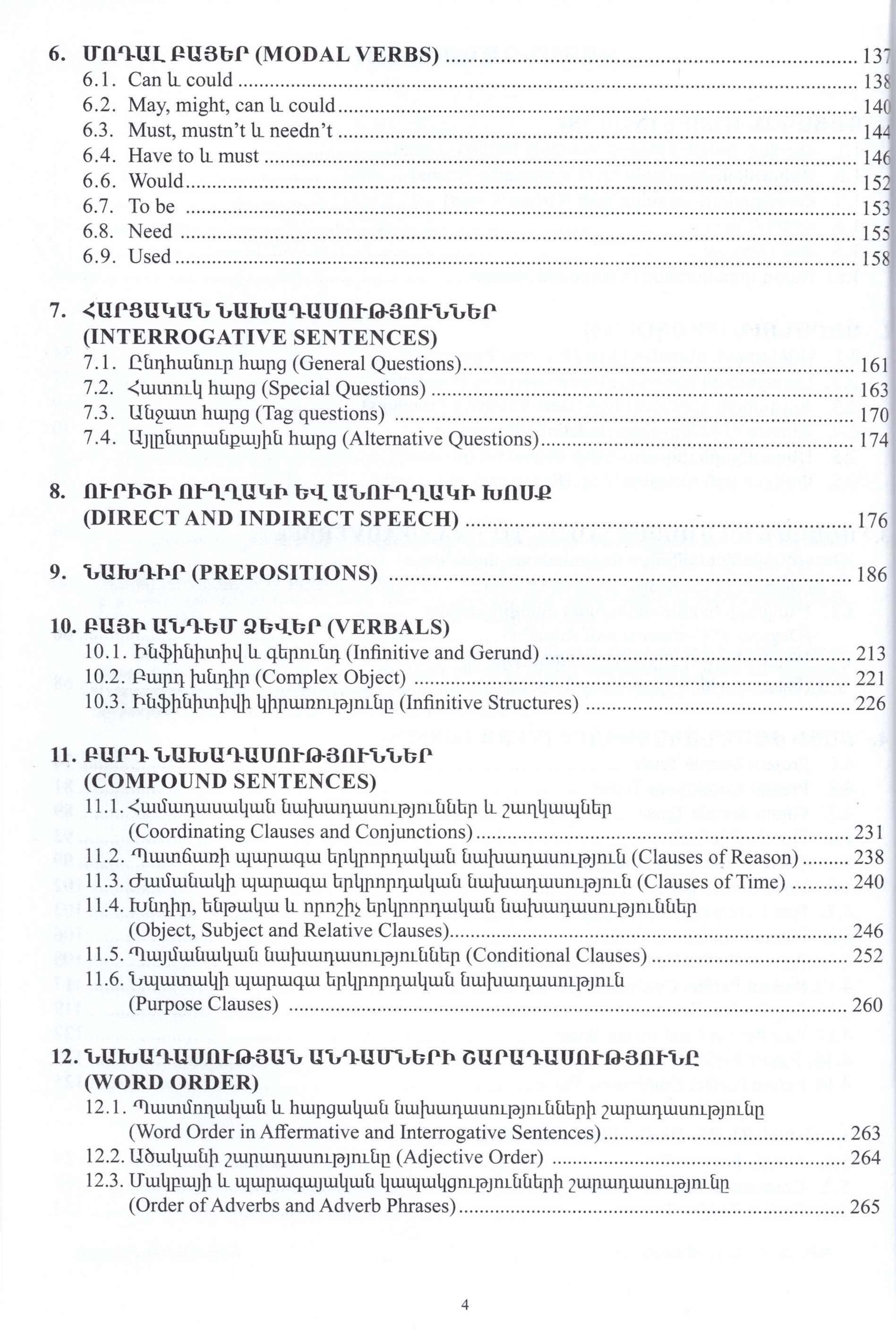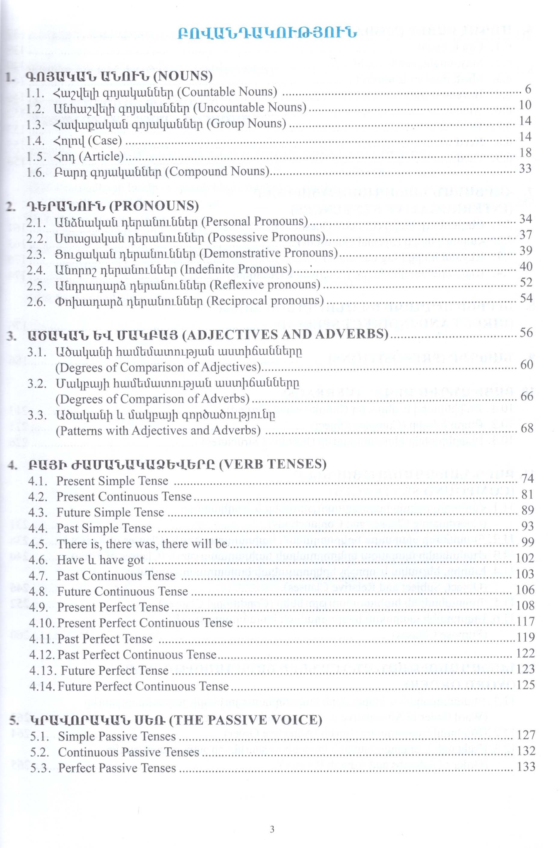 Ձեռնարկում մատչելի հայերենով ներկայացված են այն հիմնական քերականական կանոնները, որոնք անհրաժեշտ են անգլերենի լեզվական կառույցները ընկալելու համար: Յուրաքանչյուր կանոն ամրապնդվում է առաջադրանքներով՝ կազմված պարզից դեպի բարդ սկզբունքով, իսկ բառապաշարը՝ տարբեր բաժիններում կրկնության միջոցով յուրացնելու և աստիճանաբար ընդլայնելու: