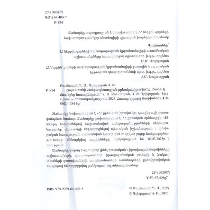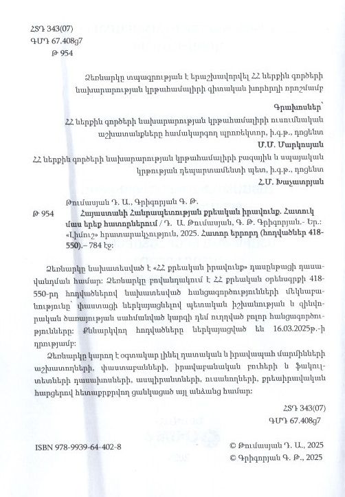 ՀՀ Քրեական իրավունք․ Հատուկ մաս երեք հատորներում․ Հատոր 3
