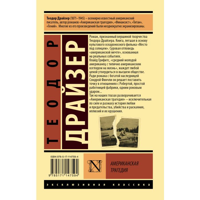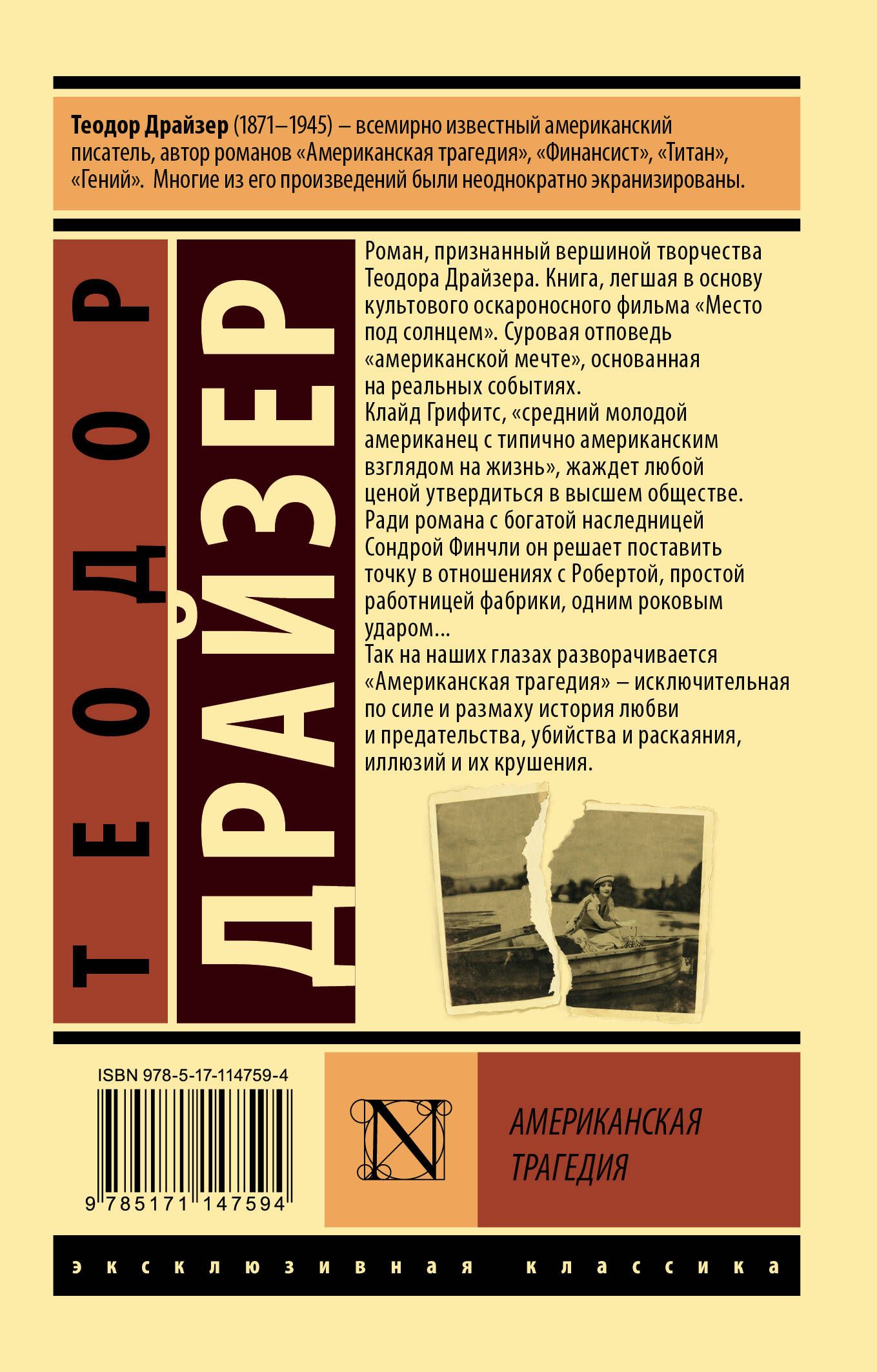 Книга, легшая в основу культового оскароносного фильма "Место под солнцем".