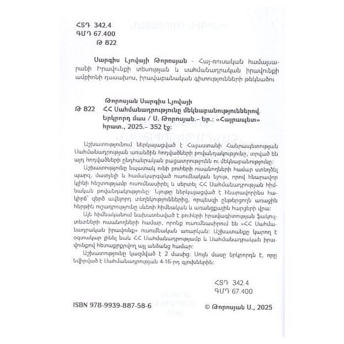 ՀՀ Սահմանադրությունը մեկնաբանություններով․ Երկրորդ մաս