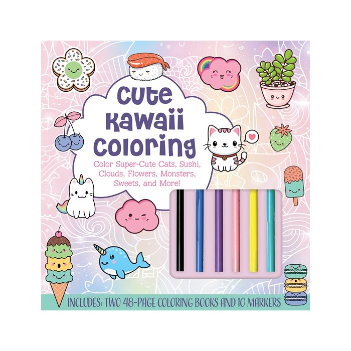 Cute Kawaii Coloring Kit: Color Super-Cute Cats, Sushi, Clouds, Flowers, Monsters, Sweets, and More