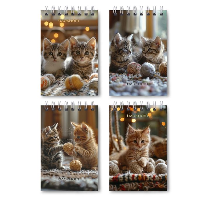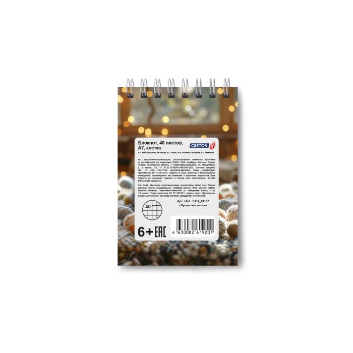Блокнот А7 Svetoch 40л. Евроспираль, клетка. Пушистые лапки
