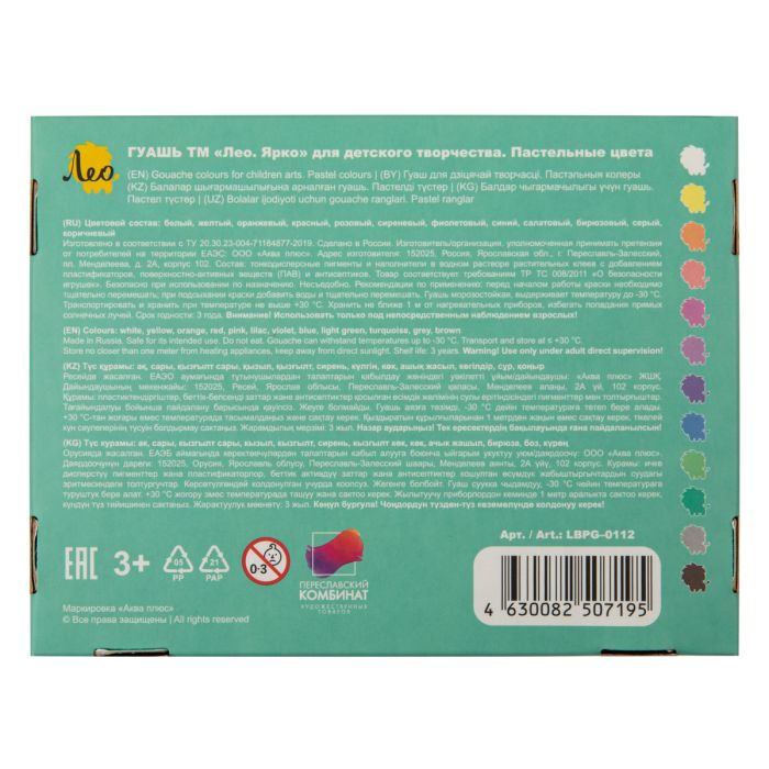 Гуашь Лео Ярко 12цв. 20мл. пастельные цвета