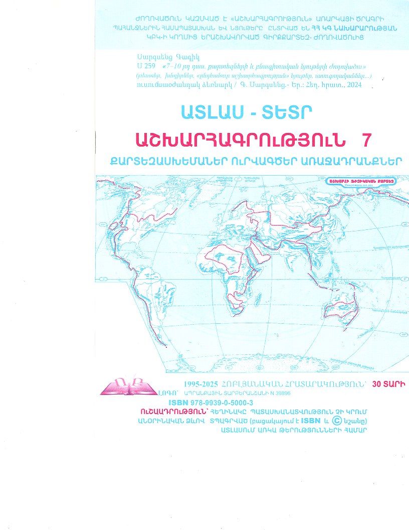 Աշխարհագրություն 7․ Ատլաս-տետր, քարտեզասխեմաներ, ուրվագծեր առաջադրանքներ