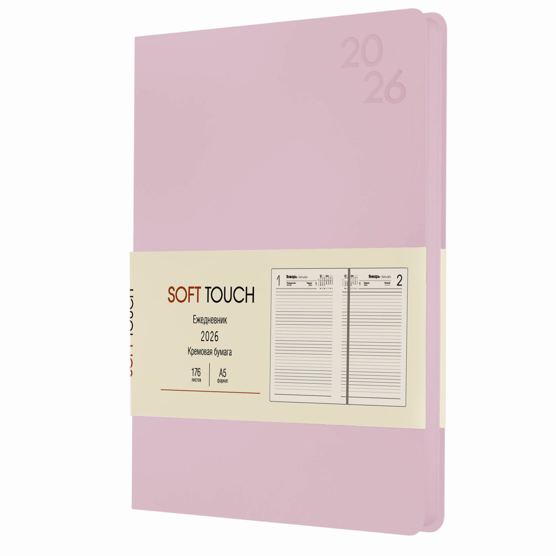 Ежедневник 2026г. А5 176л. Soft Touch. Розовый кварц