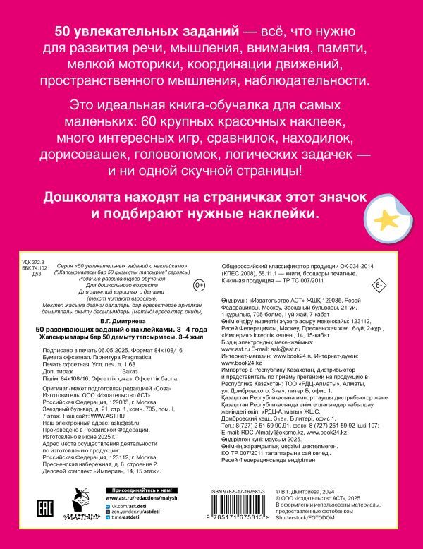 50 развивающих заданий с наклейками. 3-4 года