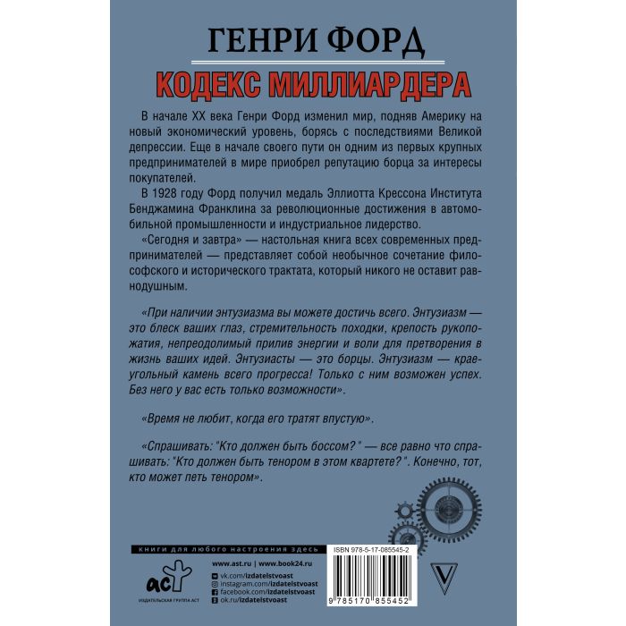 В начале XX века Генри Форд изменил мир, подняв Америку на новый экономический уровень, борясь с последствиями Великой депрессии. Еще в начале своего пути он одним из первых крупных предпринимателей в мире приобрел репутацию борца за интересы покупателей. В 1928 году получил Медаль Эллиотта Крессона института Бенджамина Франклина за революционные достижения в автомобильной промышленности и индустриальное лидерство.